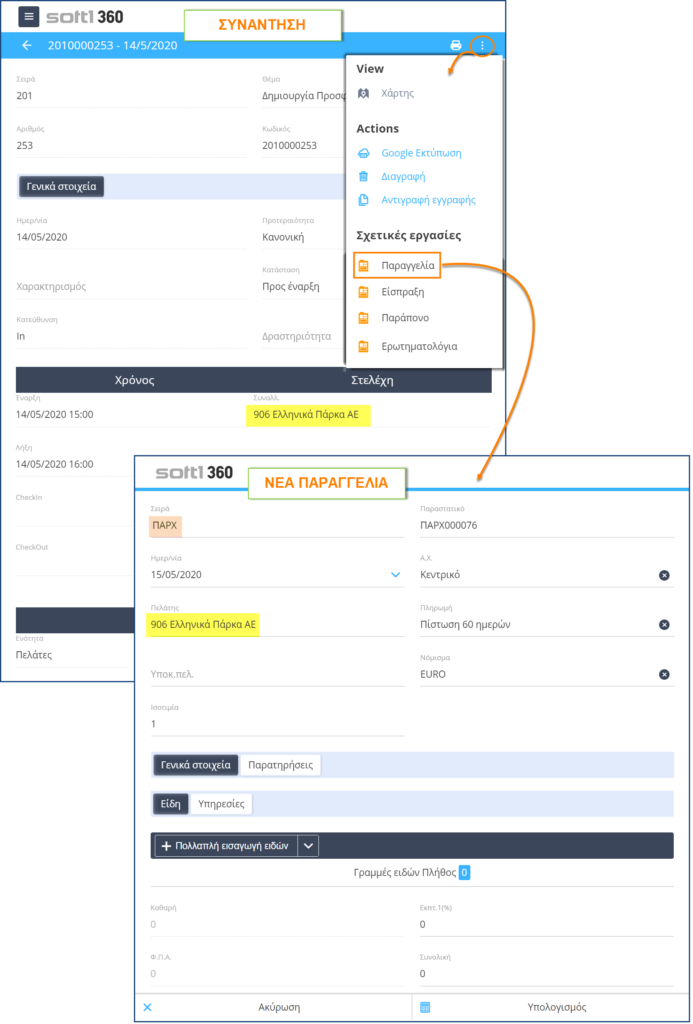 Με καινοτόμες λύσεις όπως αυτή του Mobile s360 μπορείτε να τρέχετε την επιχείρηση σας από παντού. Από οποιαδήποτε συσκευή tablet/smartphone ή υπολογιστή μπορείτε να συνδεθείτε στην πλατφόρμα του Soft1 s360 και να εργαστείτε επικοινωνόντας με πελάτες,προμηθευτές και συνεργάτες όπου και αν βρίσκεστε. Αυτό σημαίνει ότι και στον χώρο του πελάτη ή του προμηθευτή σας θα έχετε άμεση πρόσβαση στα εταιρικά σας στοιχεία όπως είναι π.χ. οι καρτέλες πελατών ή τα υπόλοιπα ειδών. Επιπρόσθετα, θα μπορείτε να κάνετε καταχωρήσεις παραστατικών(π.χ. παραγγελίες) ή καταχώρηση των στοιχείων ενός νέου ή υποψήφιου πελάτη.